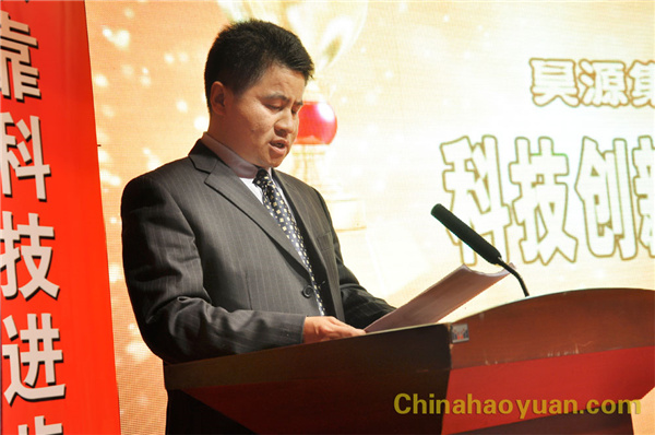 公司常務(wù)副總經(jīng)理凡殿才宣讀了表彰決議。共有4個(gè)項(xiàng)目獲集團(tuán)技術(shù)進(jìn)步獎(jiǎng)、20個(gè)項(xiàng)目獲集團(tuán)知識(shí)產(chǎn)權(quán)獎(jiǎng)、14個(gè)項(xiàng)目獲集團(tuán)技術(shù)創(chuàng)新獎(jiǎng)、1人獲集團(tuán)突出貢獻(xiàn)獎(jiǎng)。他希望全公司廣大科技工作者要向獲獎(jiǎng)?wù)邔W(xué)習(xí),團(tuán)結(jié)協(xié)作、頑強(qiáng)拼搏,進(jìn)一步加強(qiáng)科學(xué)技術(shù)研究與創(chuàng)新,為實(shí)現(xiàn) “百億規(guī)模、百年昊源”的 戰(zhàn)略目標(biāo)作出更大貢獻(xiàn)。